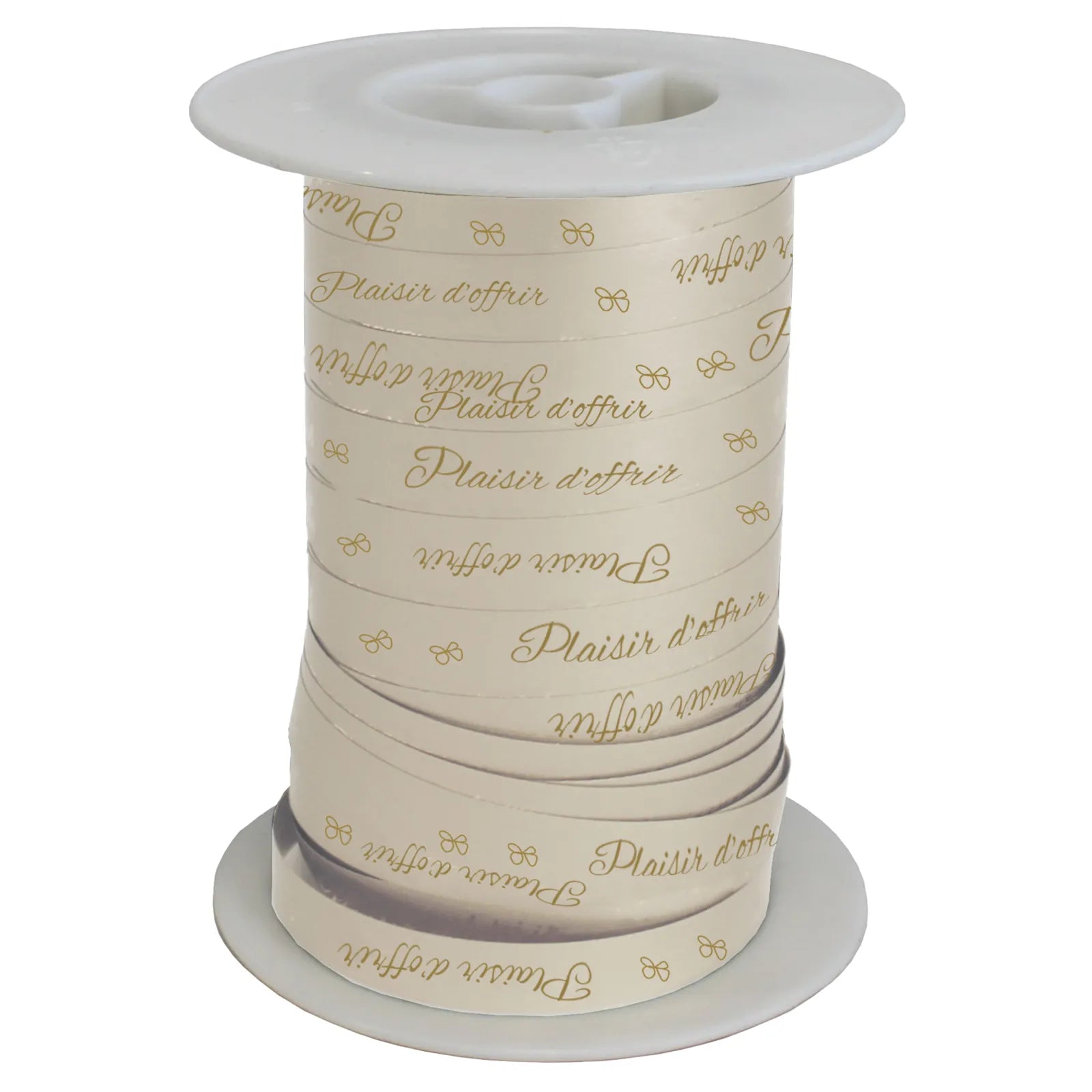 Ce bolduc de haute qualité, fabriqué en Europe, est résistant et permet de réaliser facilement des nœuds solides. Sa souplesse permet également de former des boucles parfaites d’un simple coup de lame. Avec son inscription "Plaisir d’Offrir", il ajoute une touche personnalisée et élégante à tous vos emballages.